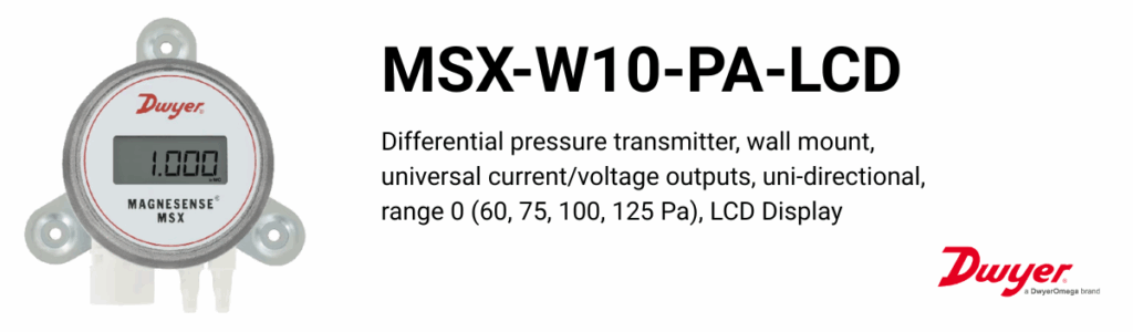 For accurate and reliable pressure measurement in HVAC and cleanroom environments, the Dwyer MSX-W10-PA-LCD stands out with its high precision, wall-mount design, and a large LCD display for easy readability. With multiple selectable ranges and universal outputs, it’s a versatile solution for pressure monitoring applications.